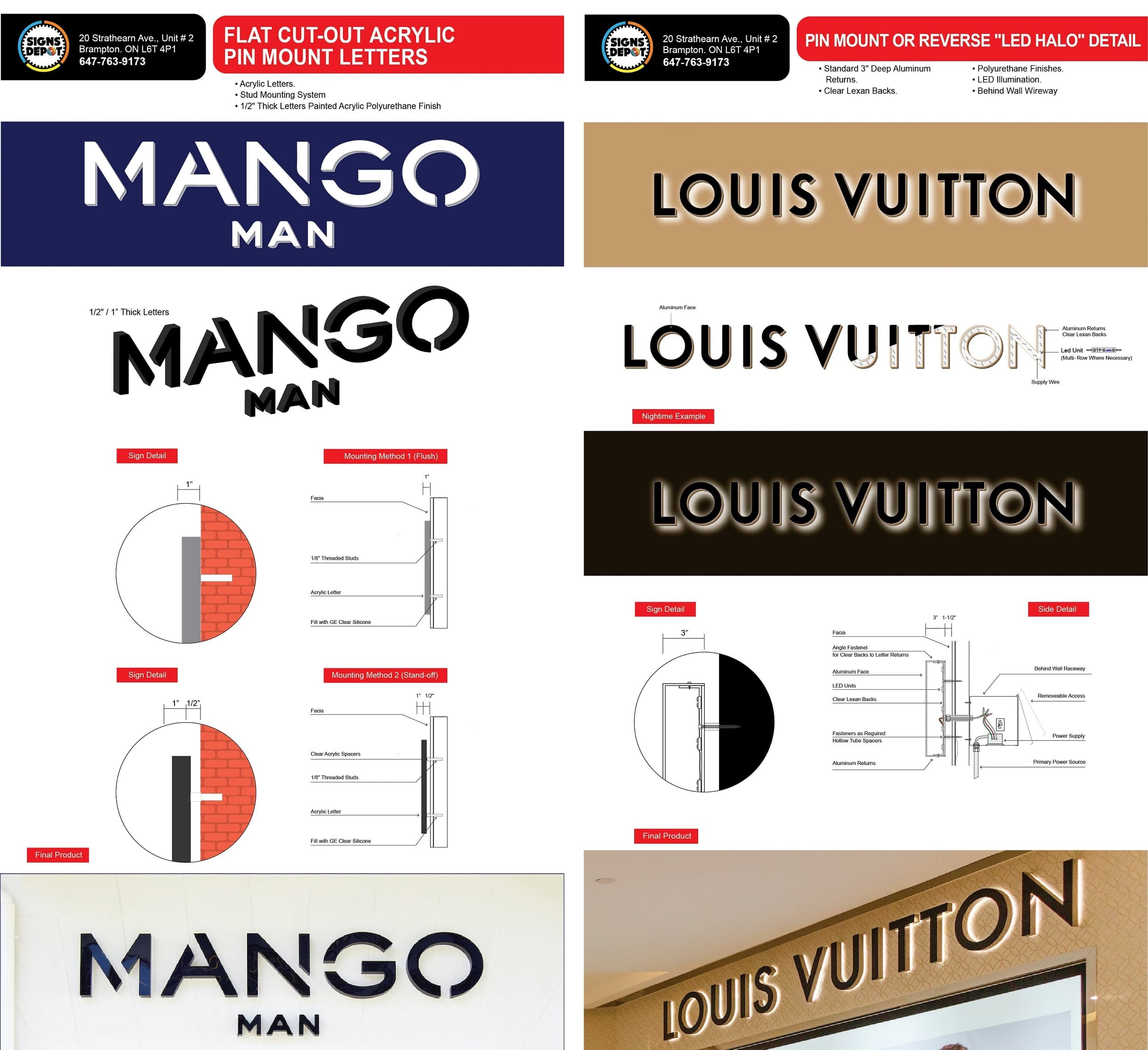 Signs Depot Toronto offers the best pin-mounted letter signs, providing a sleek, professional look with high-quality materials and craftsmanship. Our custom-designed letters add depth and elegance to your business signage, ensuring your brand stands out. Trust us for durable, visually appealing pin-mounted signs that make a lasting impression.